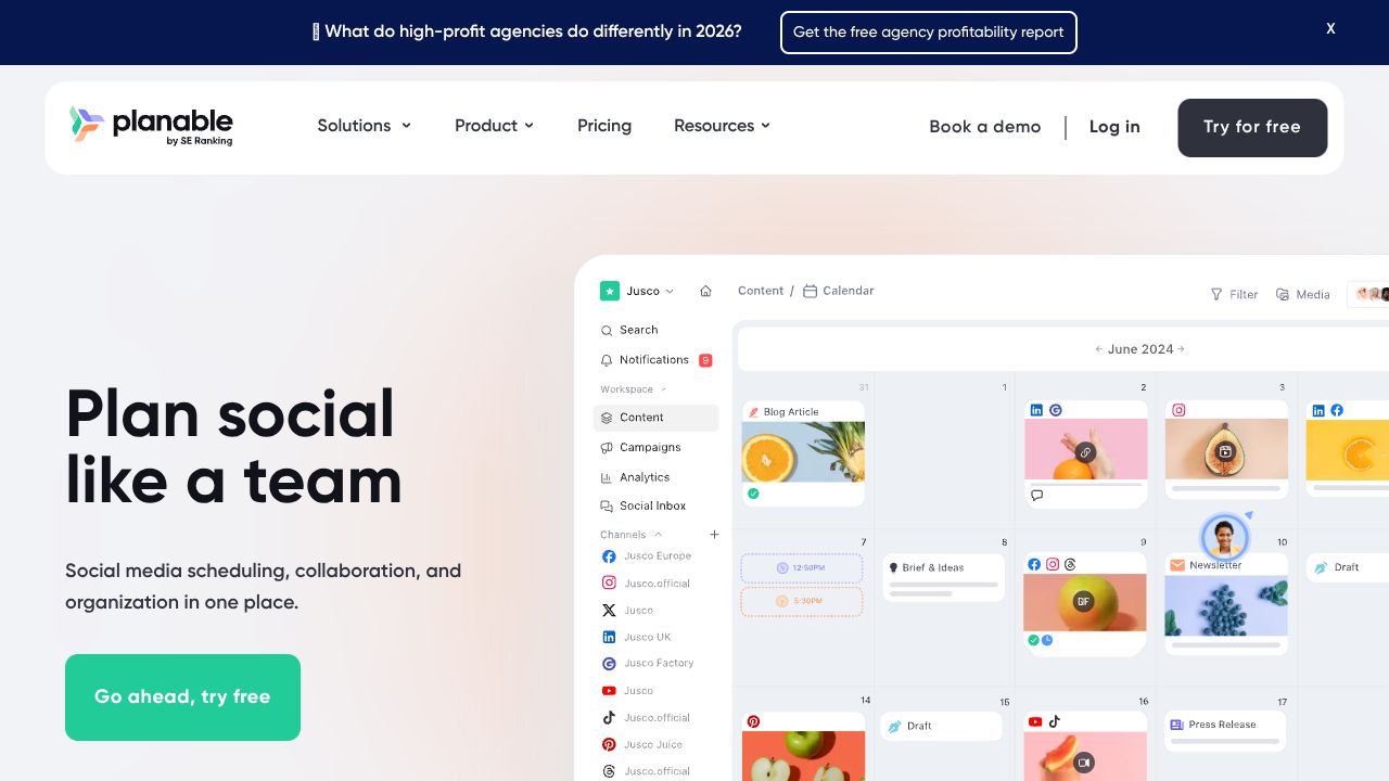 Planable is a collaboration-first tool tailored for agencies and brands that need precise reviews, controlled approvals, and a visual calendar for content planning. It shines with pixel-perfect previews, multi-workspace approvals, shared calendars and time-to-post reminders — features we’ve tested across teams and campaigns. From a technical standpoint, Planable’s product design prioritizes deterministic rendering and predictable scheduling: the UI and backend are optimized to present exactly how content will appear on target channels, minimize approval back-and-forth, and keep multiple client workspaces separated and auditable.